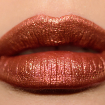 Pat McGrath Flesh Fatale BlitzTrance Lipstick ($38.00 for 0.13 oz.) is a muted, reddish-copper with warm undertones and gold and pink pearl and larger...