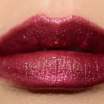 Ciate Apollo Glitter Storm Lipstick ($22.00 for 0.12 oz.) is a muted, medium-dark plum with subtle, warm undertones and flecks of gold and violet...