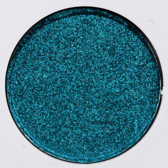 Colour Pop Gridlock Pressed Powder Shadow ($4.50 for 0.05 oz.) is a bright, medium bluish-teal with cool undertones and a sparkling, frosted finish. It had nearly opaque color coverage that applied unevenly to bare skin and was a challenge to build up due to the texture.
